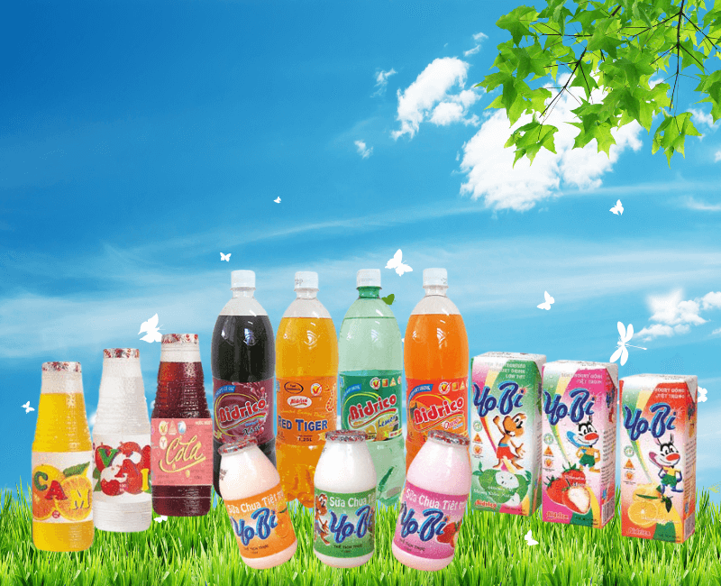 Các sản phẩm chủ lực: Nước ngọt không gaz chai 200ml, 100ml, nước ngọt có gaz chai 1.25l, sữa chua Yobi.