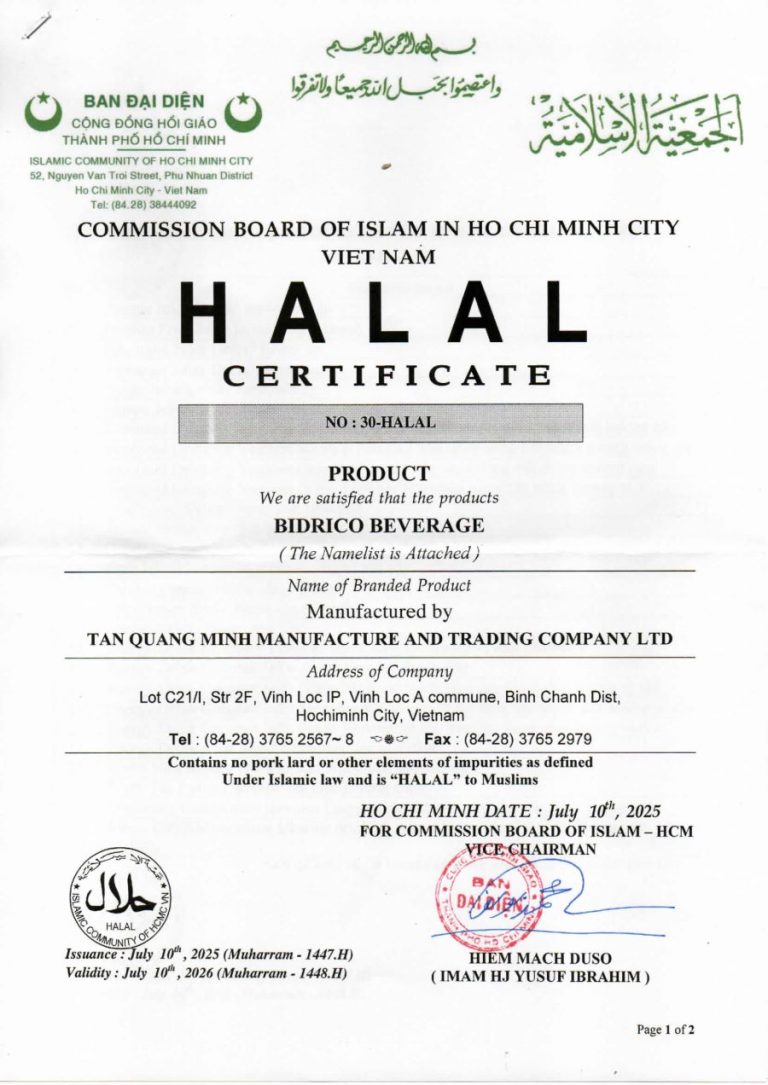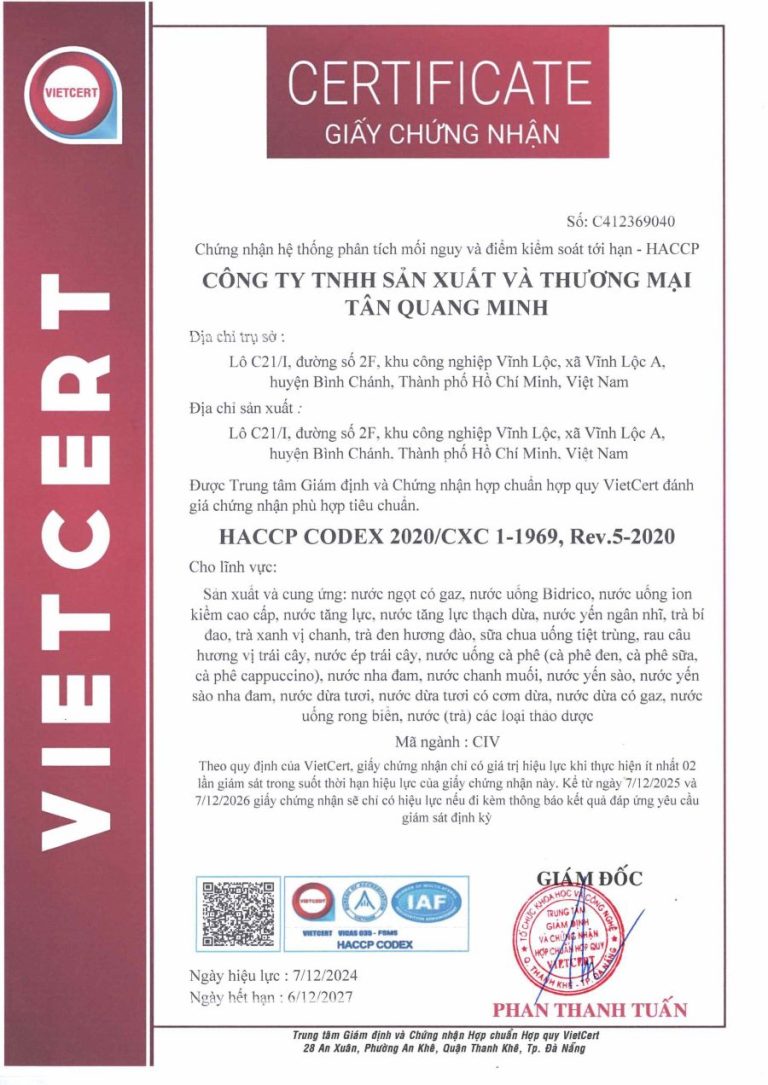 Thành lập cơ sở nước giải khát Quang Minh – thương hiệu Bidrico với chủ trương sản xuất loạt sản phẩm cho thị trường ở nông thôn Việt Nam.