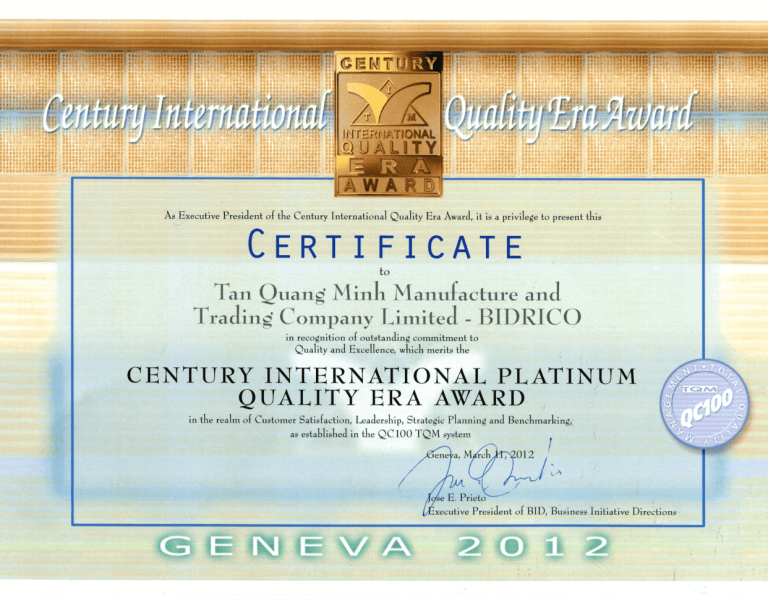 + International Era of the Century Platinum Quality Award in Geneva, Switzerland in 2012