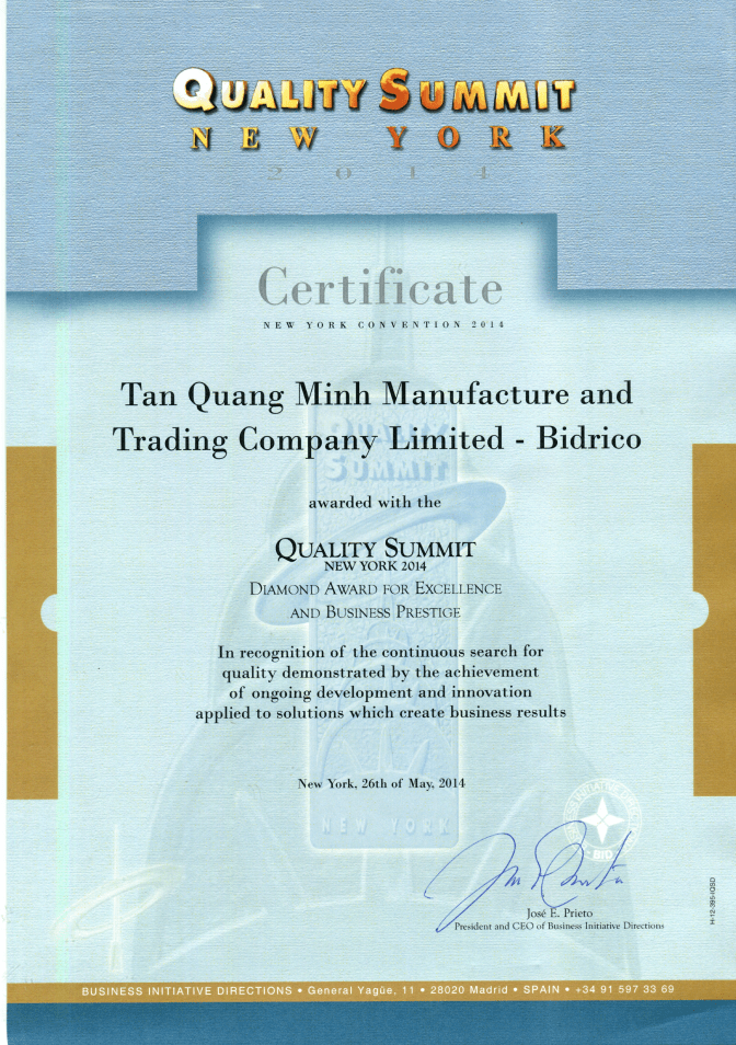 + Bidrico has been certified for high quality Vietnamese goods for many years in a row