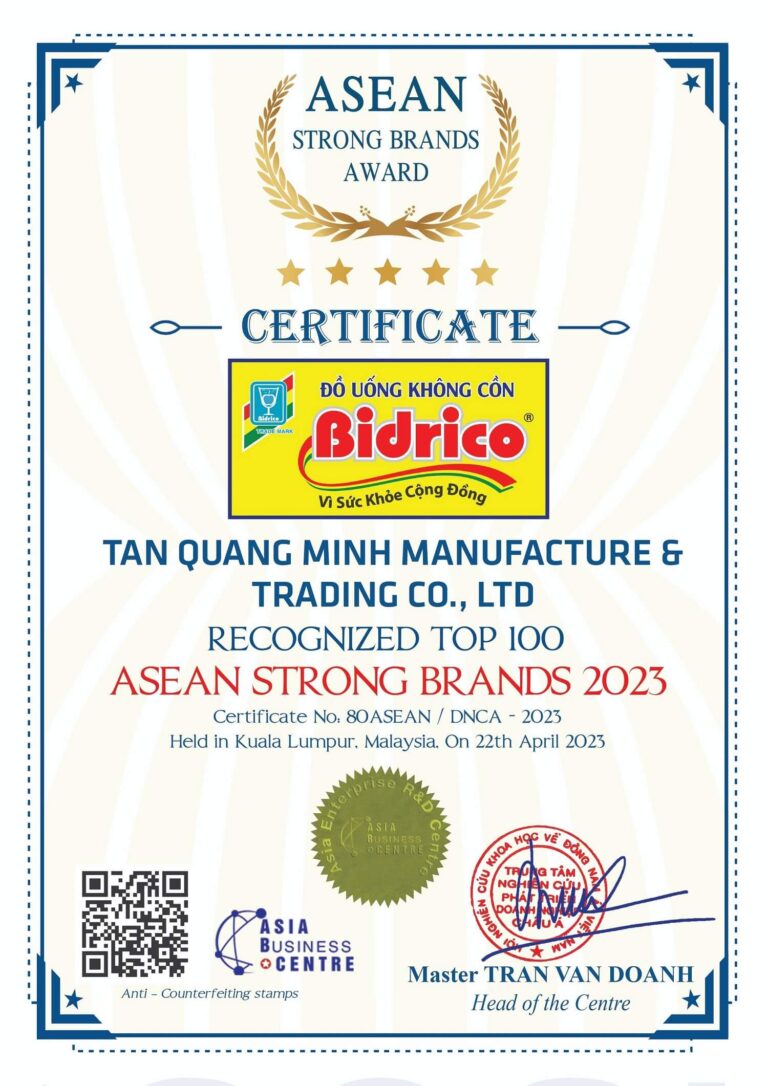 Since its establishment, Bidrico has continuously been awarded noble domestic and international awards and certificates: from the Government of the Socialist Republic of Vietnam, ministries, provinces/cities and associations. That is a testament to Bidrico’s efforts in the journey to bring non-alcoholic beverage products “For public health”.