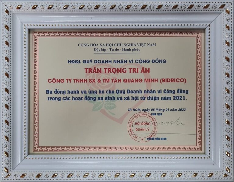 + Bidrico won 2023 Ho Chi Minh City gold brand award in 2021 – 2023