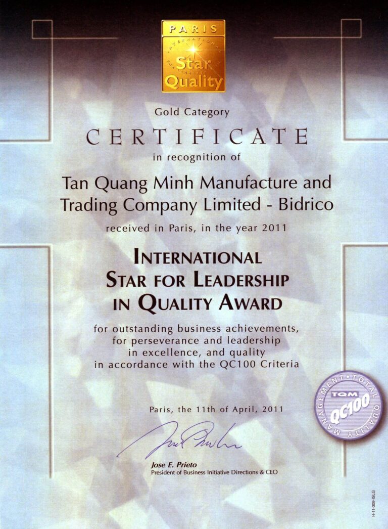 + Leading Quality International Star Gold Award in Paris, France in 2011