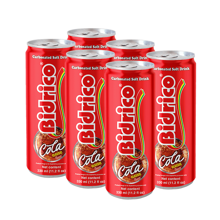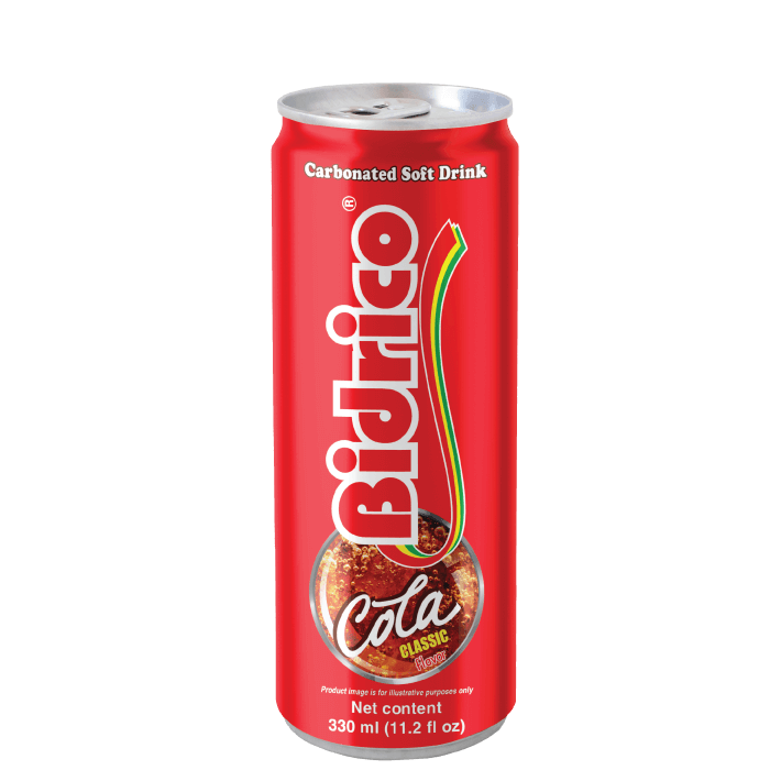 Other Bidrico carbonated soft drinks 330ml can: Orange, cream soda, cola, sarsi.