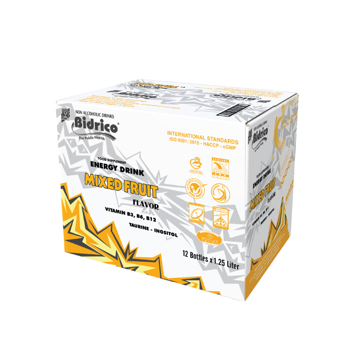 ContactBidrico energy drink mixed fruit flavor 1.25l bottle is the perfect choice to quickly replenish energy. The combination of juicy, sweet, slightly fruit with ingredients such as vitamins B3, B6, B12, taurine help to keep the mind alert, restore physical strength when tired or needing deep concentration.