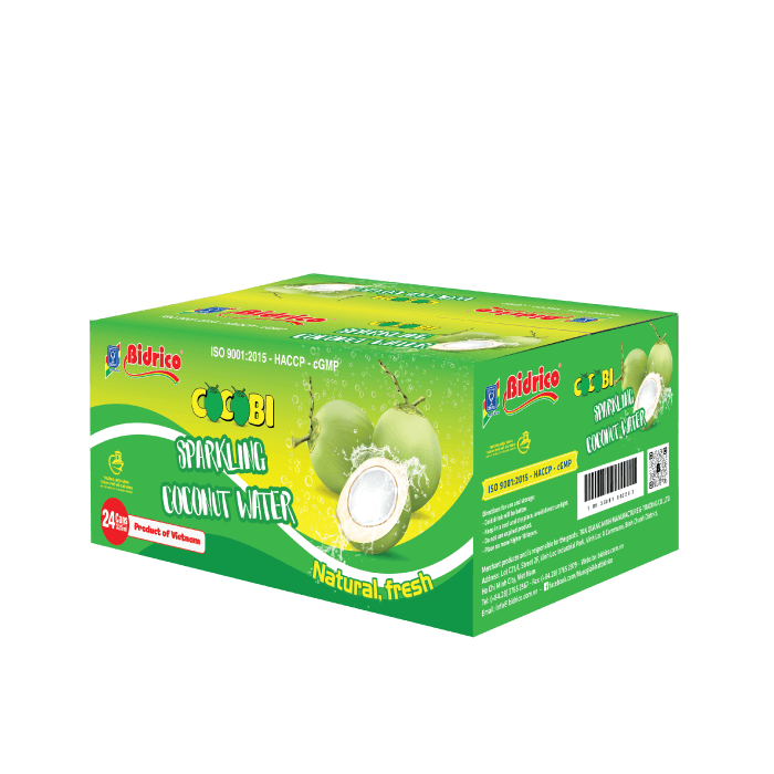 ContactCocobi sparkling coconut water 325ml can stands out with the combination of the natural sweetness of fresh coconut water and the coolness of carbonated bubbles. The product creates a delicious, fresh, refreshing taste and increases the enjoyment. This is the perfect choice for those who want to innovate and discover a modern version of natural coconut water.