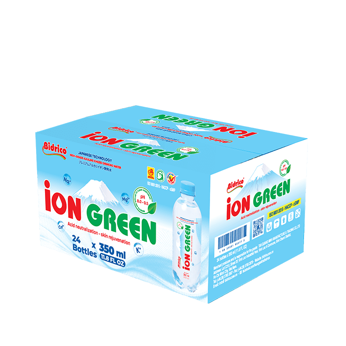 ContactION GREEN premium alkaline ionized drinking water 350ml bottle is created from electrolysis technology, which splits water into ions H+ and OH- and it has natural alkaline with pH from 8.0 – 9.5. The product is manufactured on an automatic, closed lines, integrating modern electrolysis technology from Japan.