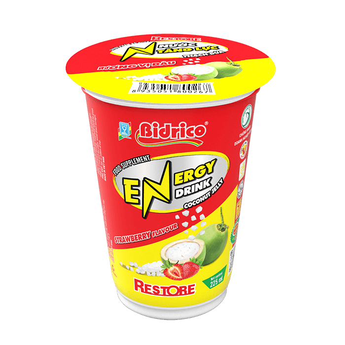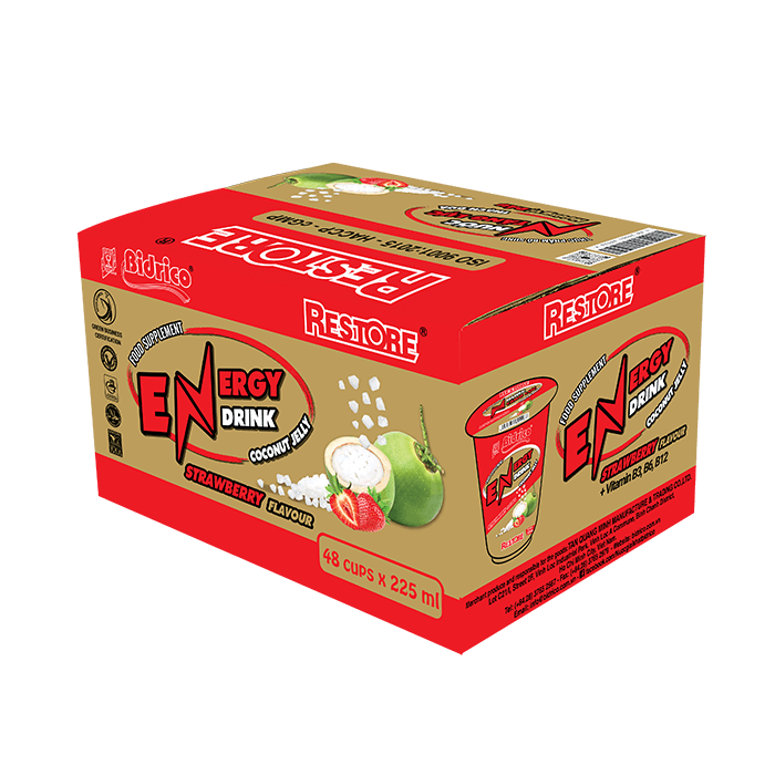 With a compact and convenient design, the product is contained in a 225ml cup, easy to take away when doing outdoor activities. Along with a safe and hygienic production system, Restore energy drink coconut jelly strawberry flavor confidently brings customers good and quality product experiences.