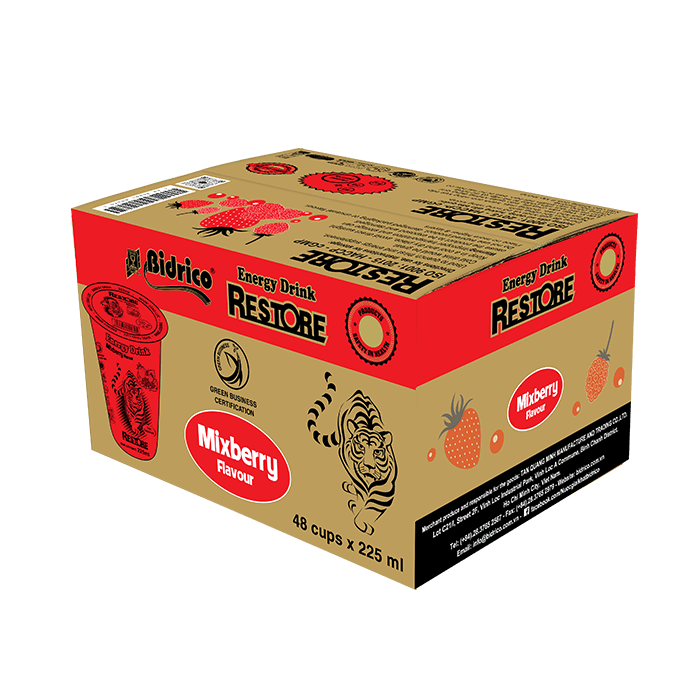 With a compact and convenient design, the product is contained in a 225ml cup to take away and use anywhere. Along with a closed, safe and hygienic production system, Restore Energy Drink Mixberry Flavor confidently brings customers good and quality product experiences.
