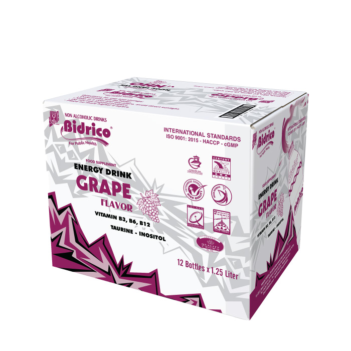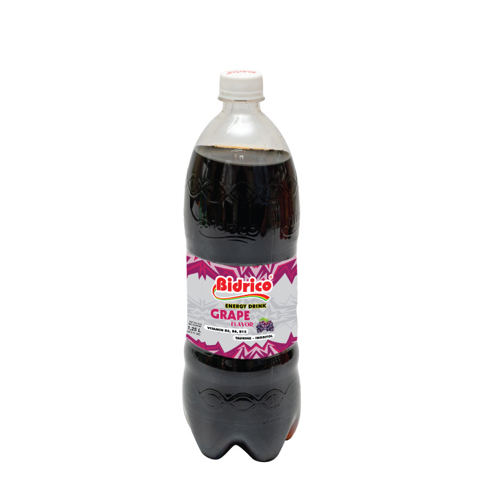 Các hương vị nước tăng lực Bidrico chai 1.25l: Trái cây, Nho, Dâu.